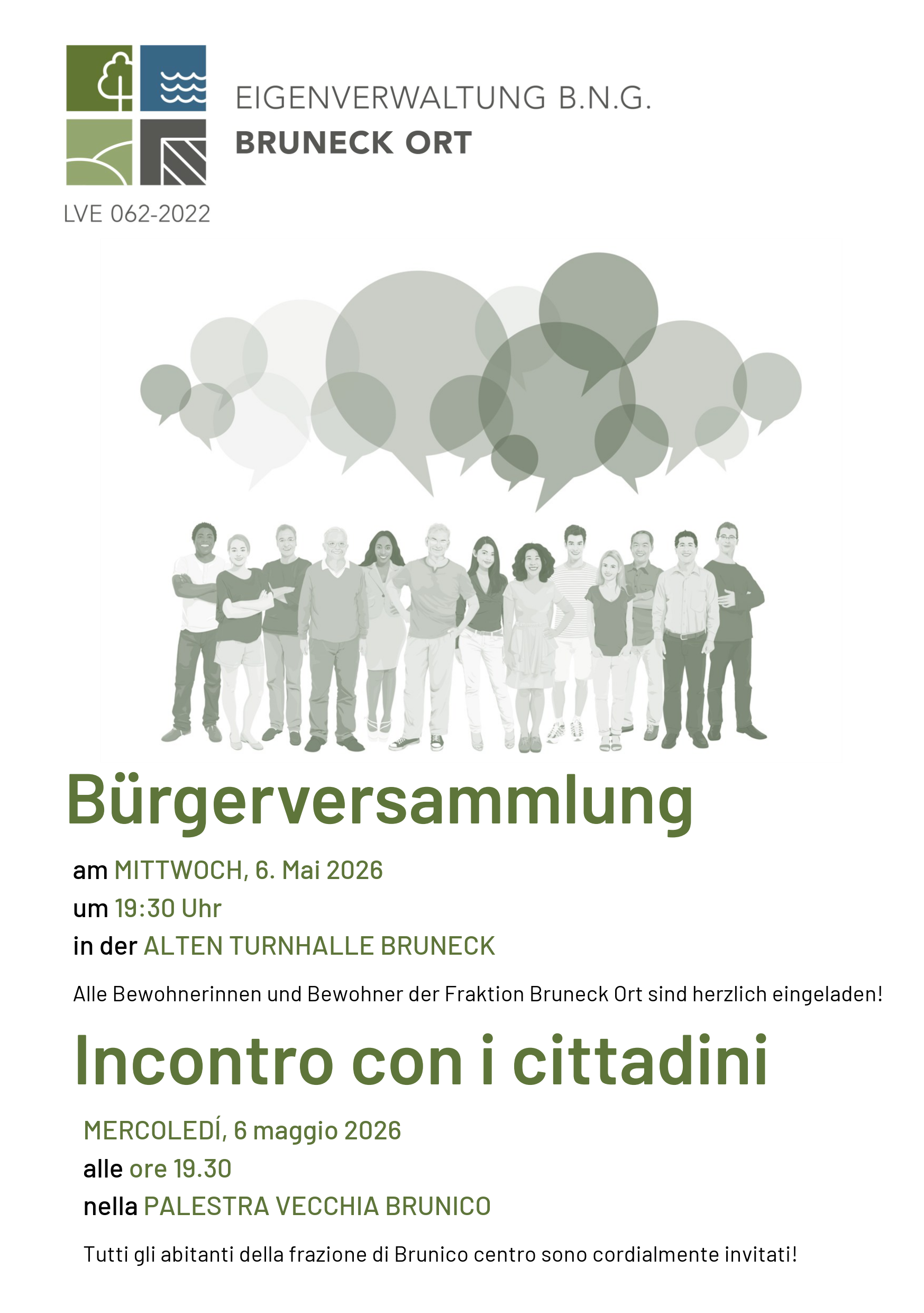 Alle Bewohnerinnen und Bewohner der Fraktion Bruneck Ort sind herzlich eingeladen!